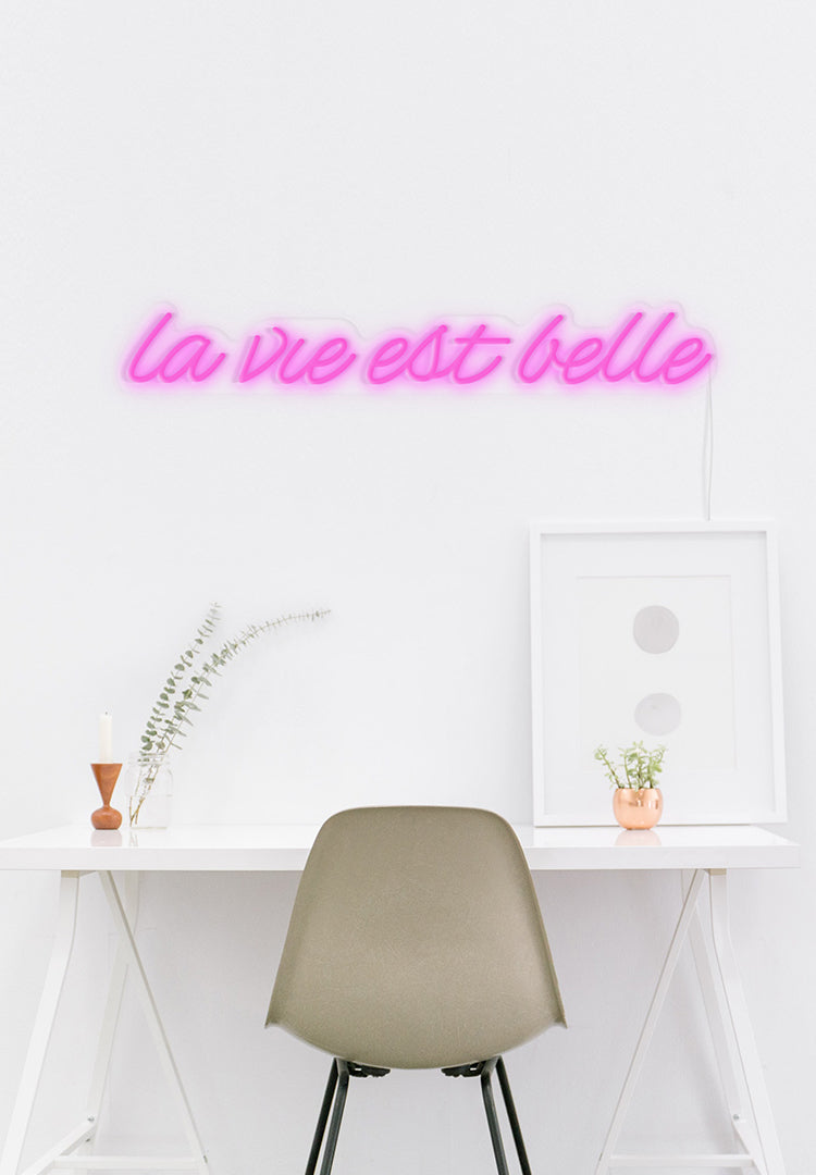 The LED sign 'La Vie Est Belle' is more than just a sign... it is a universal hymn to the beauty of life. A reminder to always keep in front of your eyes to light up the room and the day when you need it. Shout to the world that you love life through the dreamy atmosphere this light will create.